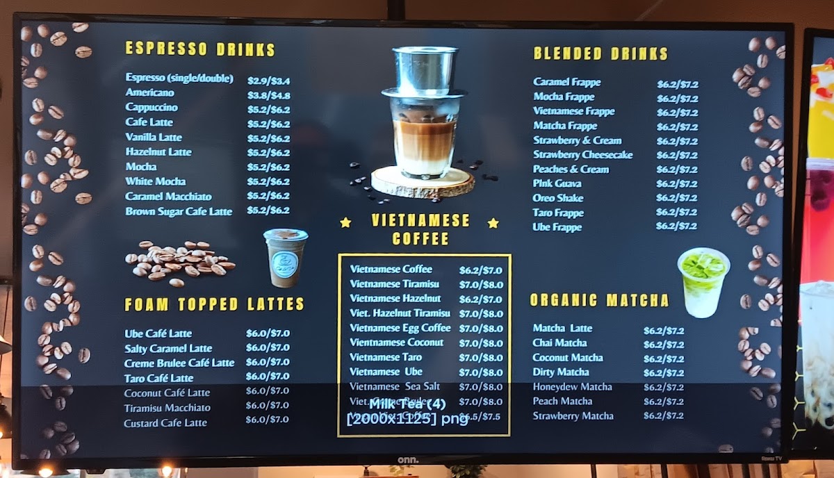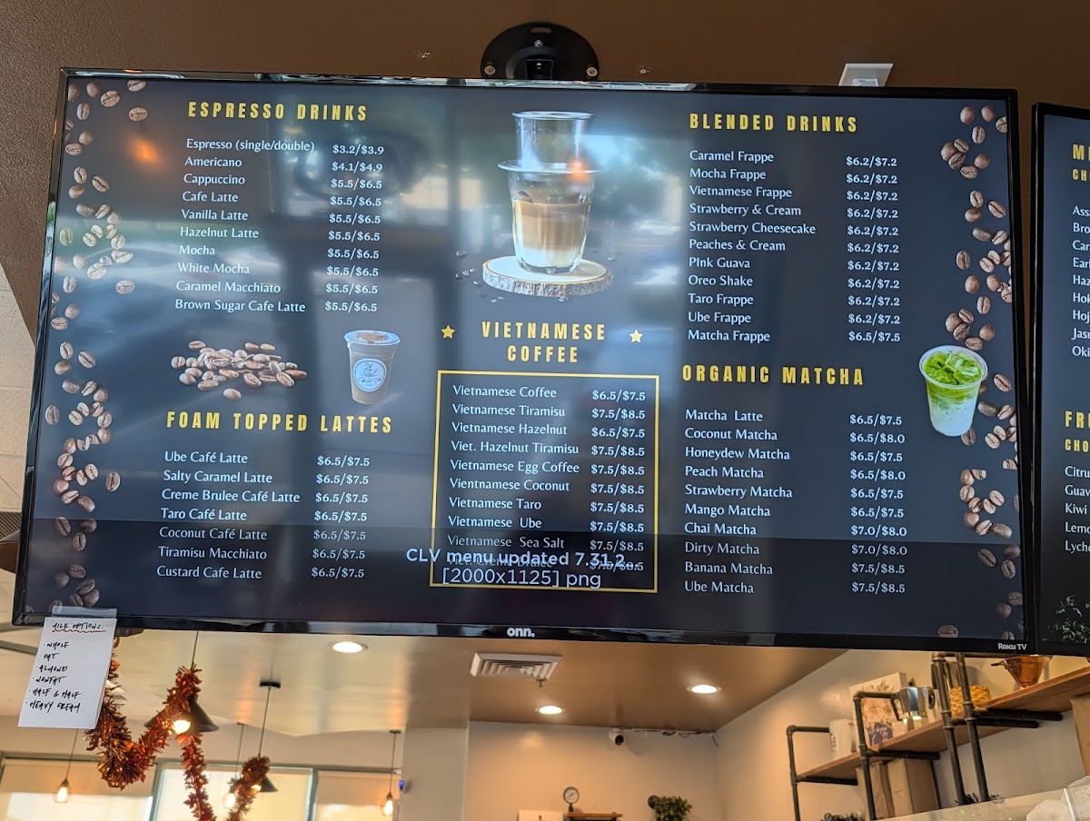 - Coffee and Specialty Drinks: This section includes a range of coffee options such as Vietnamese coffee, café lattes, and various iced coffee beverages. Customers can also choose from unique offerings like iced white mocha with almond milk and less ice, brown sugar black iced coffee, and flavored lattes topped with different types of foam.