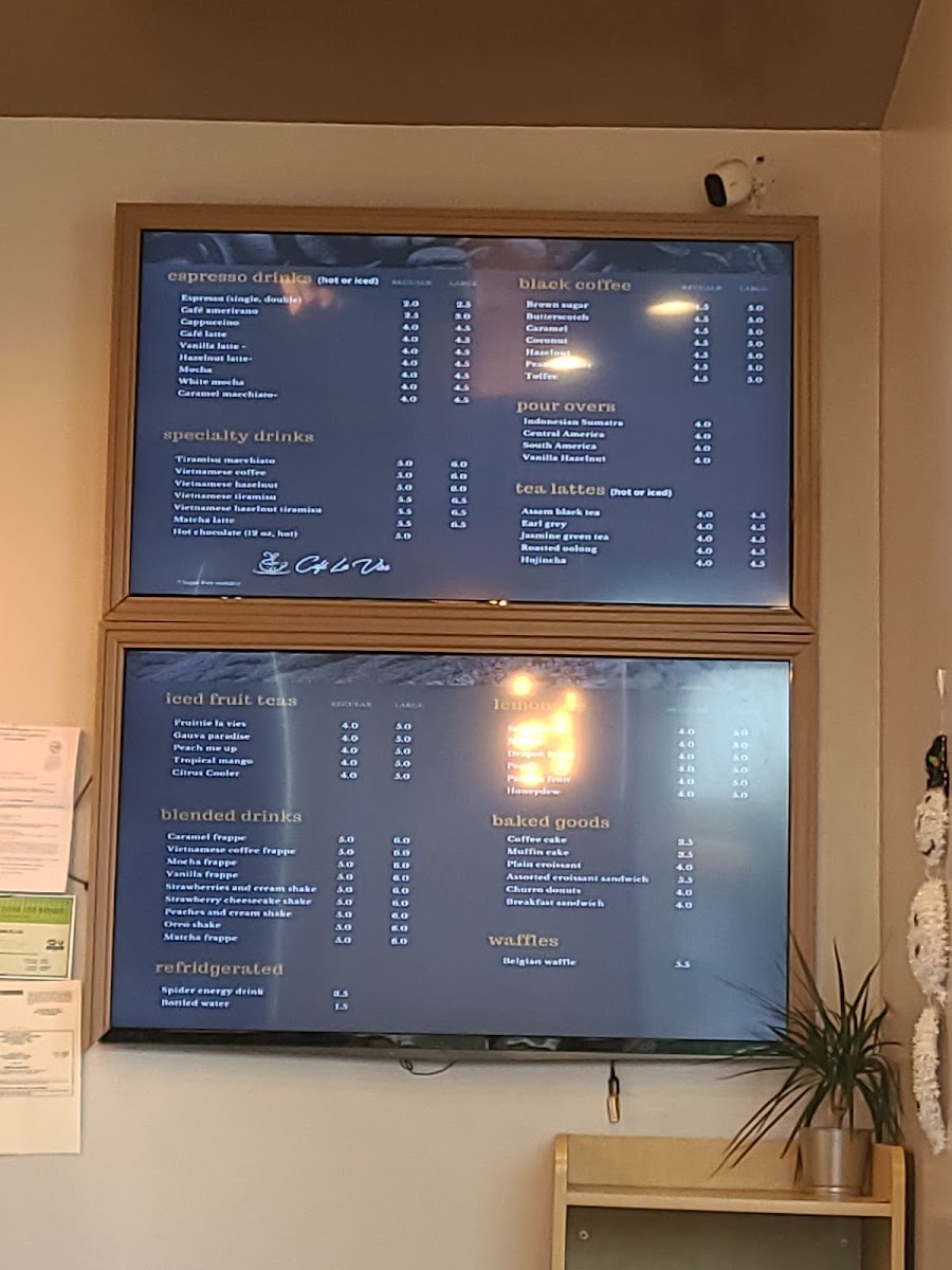 Cafe La Vies Menu